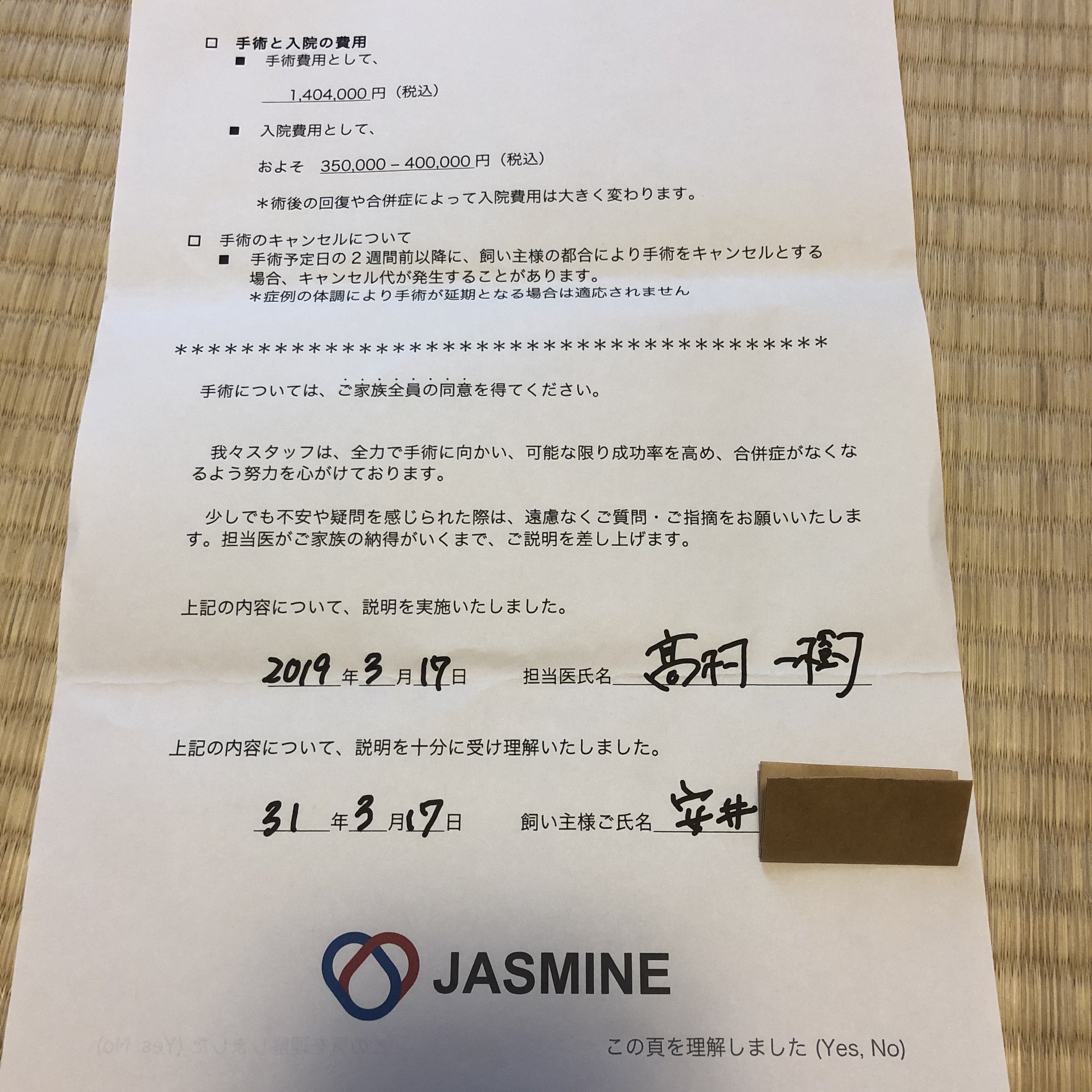 2019年3月に僧帽弁閉鎖不全症の手術の名医であるjasmineどうぶつ循環器センターに行き手術の範囲だと言われました。