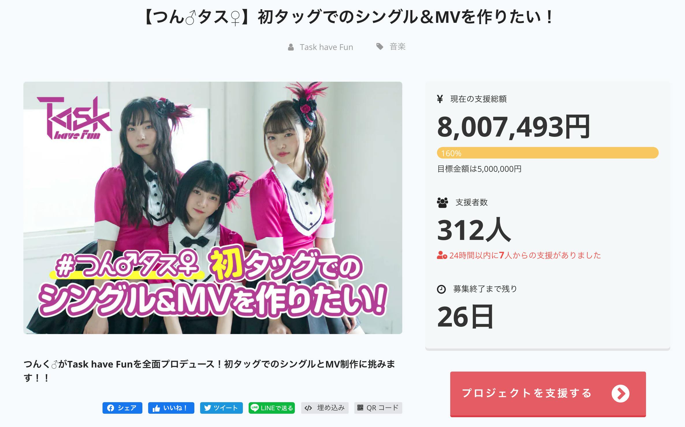 引き続き、【つん♂タス♀】初タッグでのシングル&MVを作りたい!プロジェクトをよろしくお願いいたします。