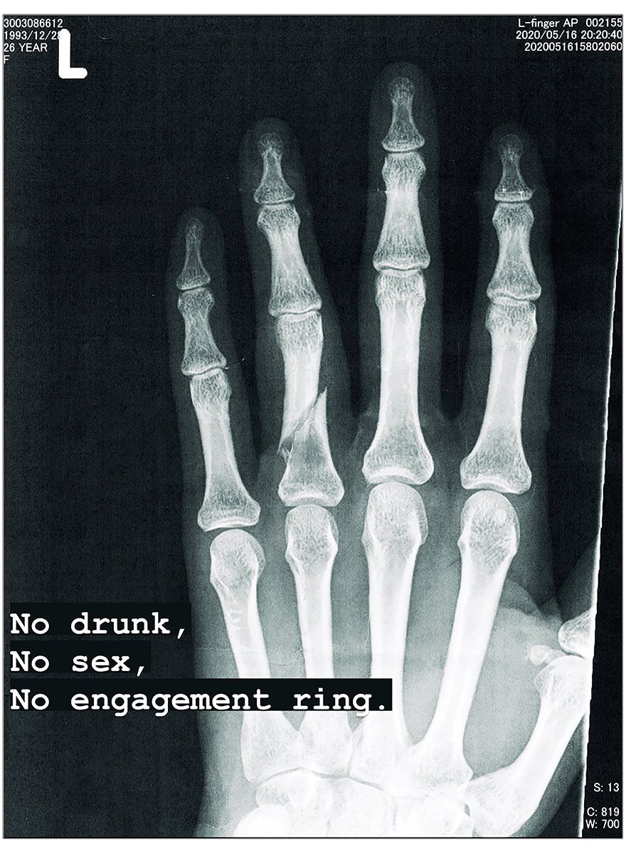 このコロナ禍で世の中が大変な中、DJの収録や動画配信、マスク製作など今自分に出来る事を!と活動を始めていた矢先、骨軟骨腫という病気により左薬指を骨折してしまいました…。