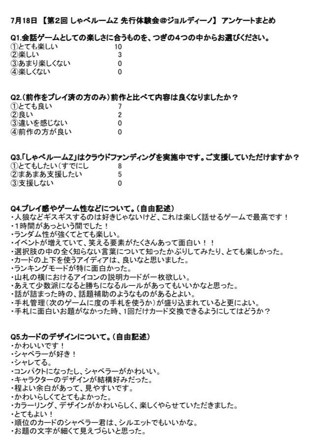 1回目同様参加いただいた皆様にアンケートを取らせていただきましたのでご報告させていただきます。