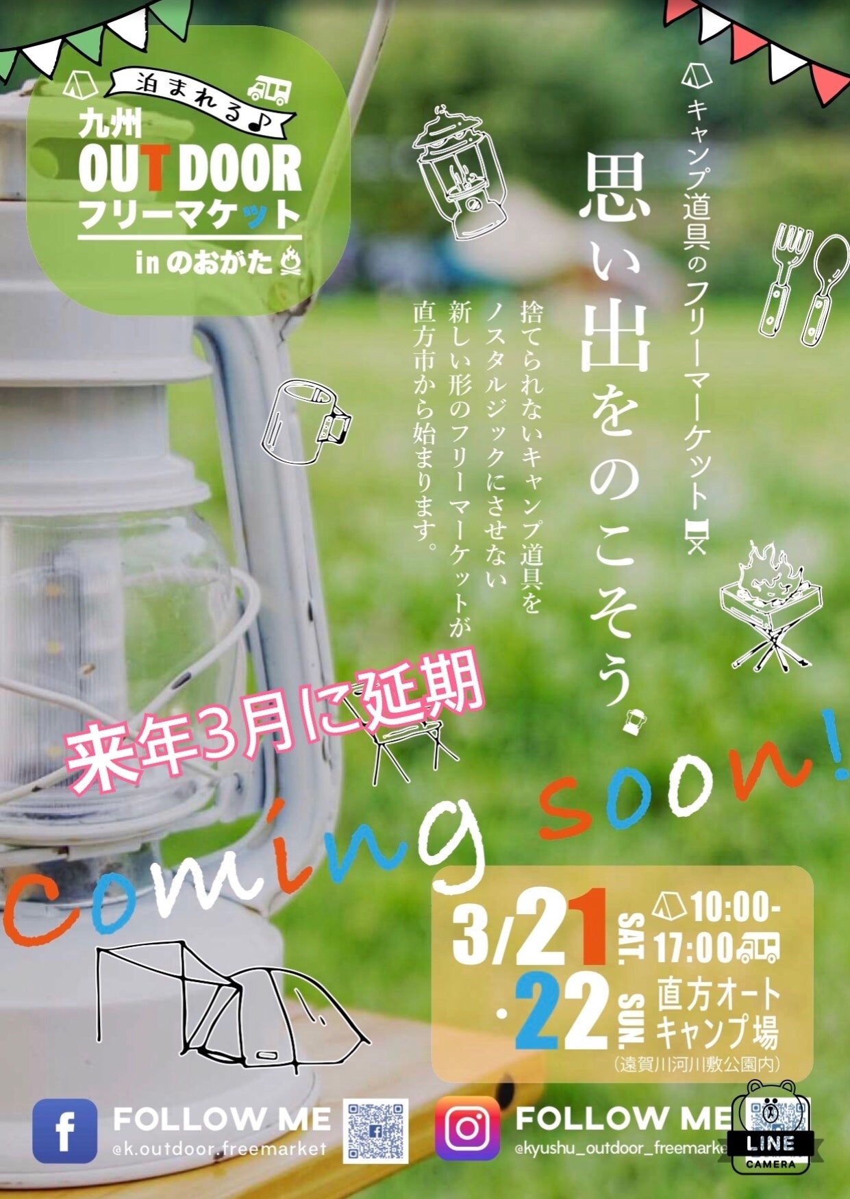 2020年3月には直方オートキャンプ場にて「泊まれる!九州OUTDOORフリーマーケットinのおがた」