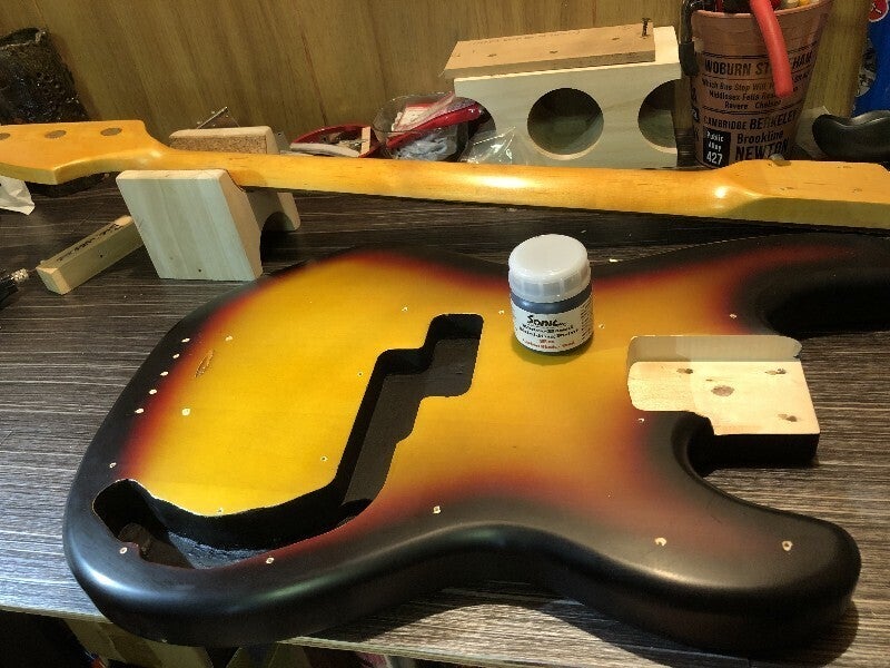 リペア・ベース工房は主人が担当し作業に当たります。元々プレイヤーをしながら自分の楽器や知人の楽器をリペアしていました。良い楽器はどうしても高額になります。材や手間などを考えると仕方ありませんが。もう少し手の届く範囲で作れると考え、実際に作成したのが写真の物になります。プロやアマチュアのプレイヤーに試奏してもらいオッケーをいただき。地域の方・プレイヤーに寄り添った工房をしたいと考えました。