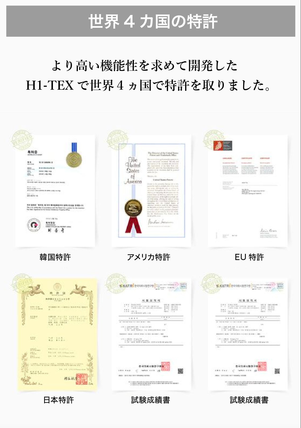 「ル・ムートン」はメリノウールの機能性と特徴を生かした上に、長く履いていても形が崩れ難くするための耐久性、フィット感が良くて軽い靴を作るために、20年のノウハウに基づいて、数万回のテストと開発を重ねてきました。その結果として誕生した特殊な生地「H1-TEX」で日本、米国、ヨーロッパ、韓国の特許を取得しています。
