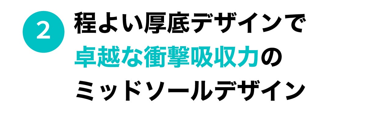 ボルディクな厚みを介して最適なクッション感を感じることができるように設計しています。見た目は、しっかりとした頑丈な感じを与え、履くと心地よいグリップ感と衝撃吸収力が抜群で、走行時のブレを少なくする機能も有しています。