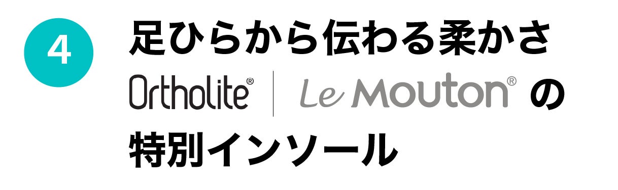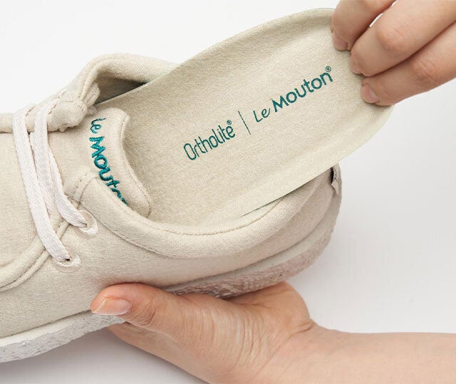 世界屈指のオーソライトのeco素材のインソールにル・ムートンのメリノウール生地を組み合わせて作ったる専用インソールは、通気性がバツグンで、靴内の湿度をコントロールしてくれる他、優れたクッション性がより長く持続します。ル・ムートンxオーソライト・インソールが足ひらから快適さをご提供します。