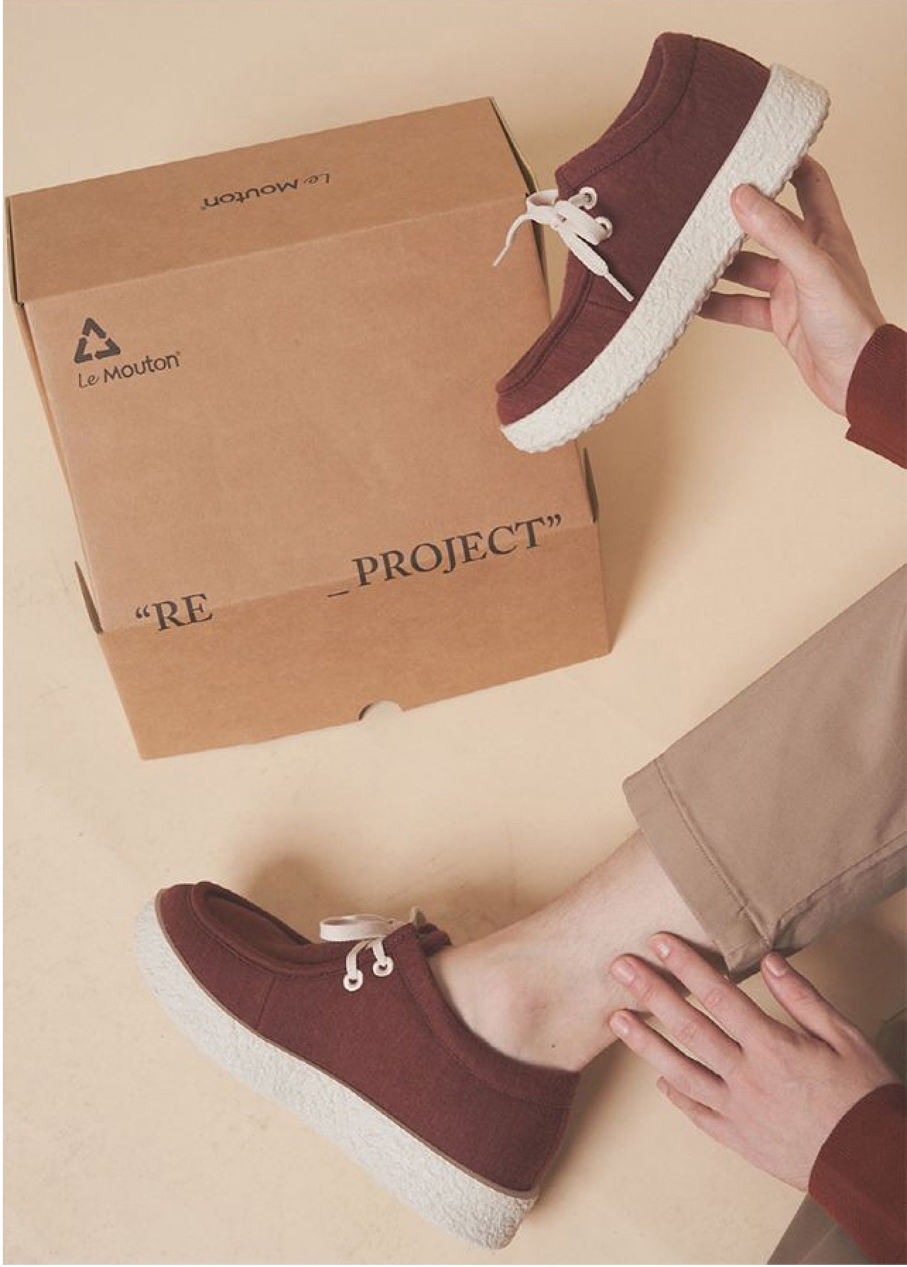 足と一体化するメリノウールシューズ「ル・ムートン」