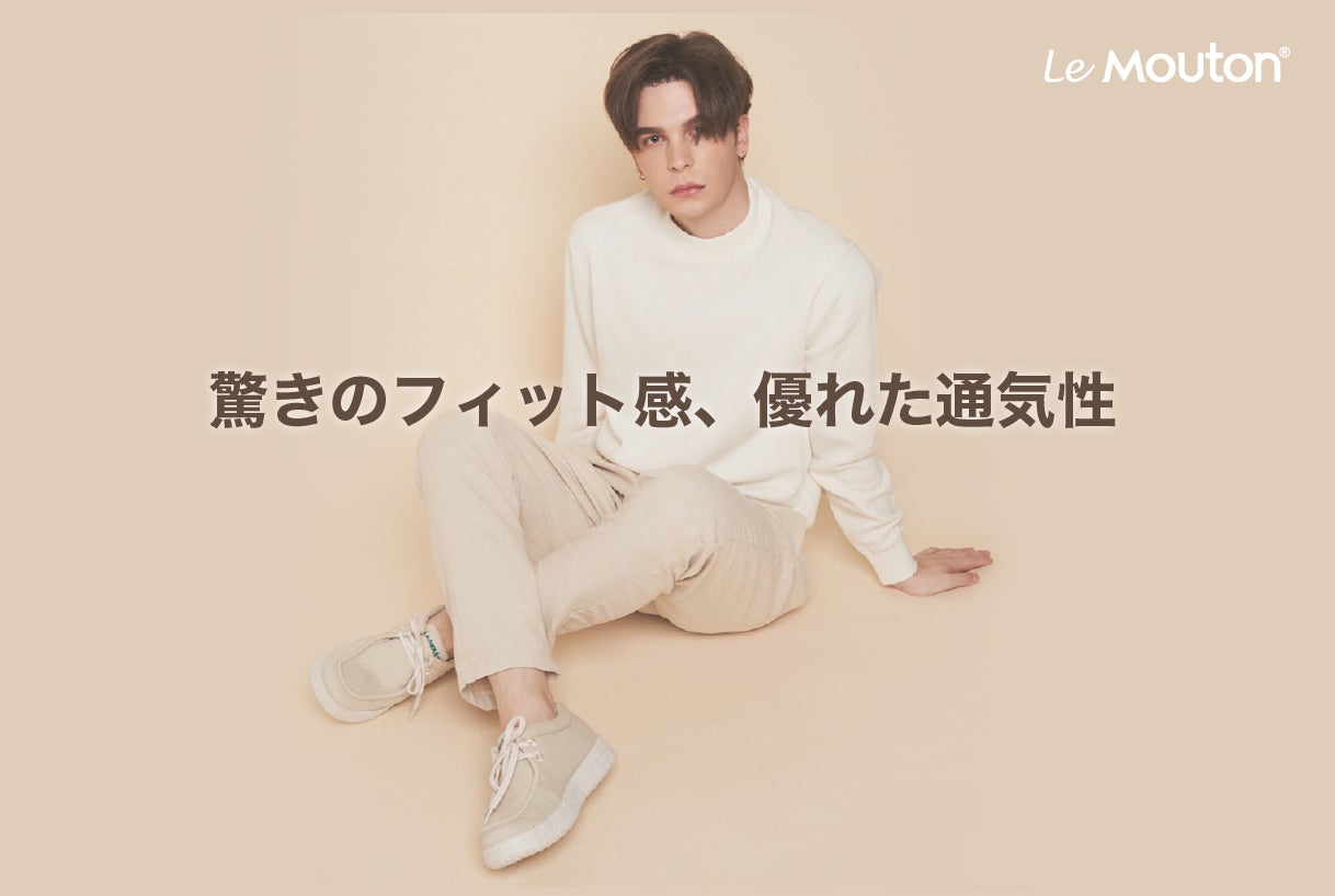 「ル・ムートン」は高級な天然素材とされているオーストラリアのメリノウールを採用し、20年間の糸織りのノウハウに基づいて開発したH1-TEXの特許技術によって、靴素材として最適な耐久性とフィット感を備えた靴を作り上げました。