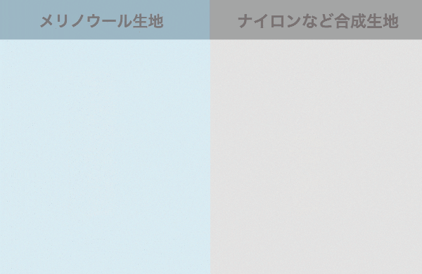 メリノウールは湿気を吸収して外に放出する優れた通気性*を持った天然繊維です。ウールの繊維は、表皮と内部層の2重構造になっており、表皮はウロコ状のスケールで覆われています。このスケールは水分を寄せつけない性質があり、つねにサラリとした肌触りを維持してくれる特徴を持っています。また、内部の水分を少しずつ蒸発して徐々に乾燥させる性質を持っています。そのため長く履いても、天気が崩れても、靴の中はいつもさっぱりした快適さを維持します。