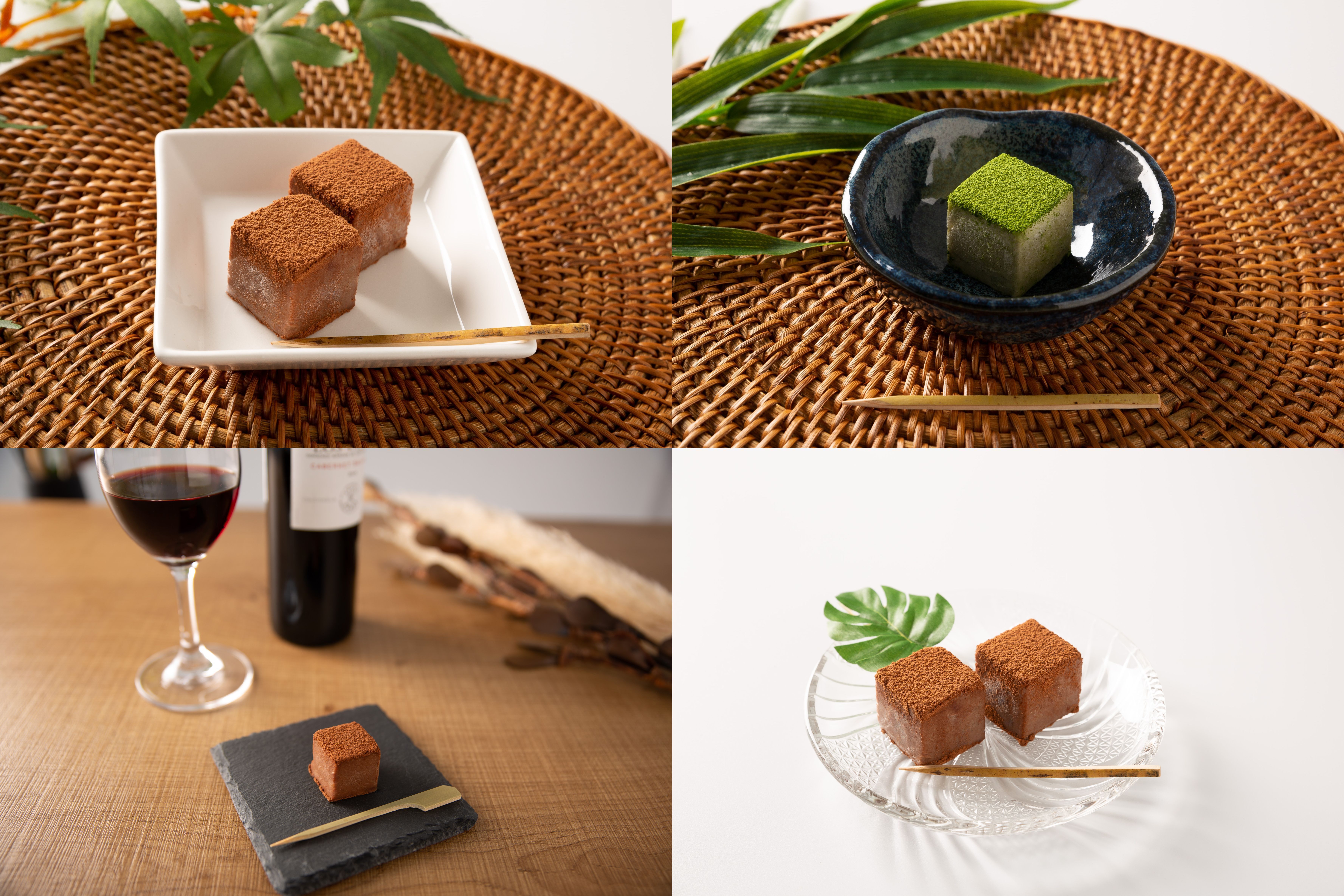 濃厚だけどヘルシーな【ごま豆腐生チョコ】。ワインやウィスキ―などのテイストをより引き立たせてくれます。より充実したご自宅夜ライフのお役に立たせて頂きます。