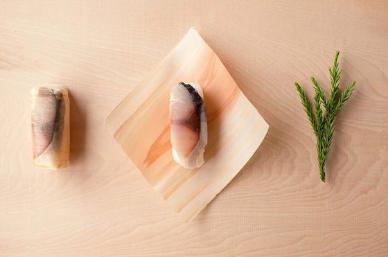 本来は竹の皮で包むのが鯖寿司ですが、杉の板を薄く削ったもので包んだ「杉鮓(すぎずし)」が作られています。