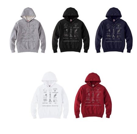 「わらしべパーカー」は赤、黒、灰、紺、白の5色から選んでいただけます。