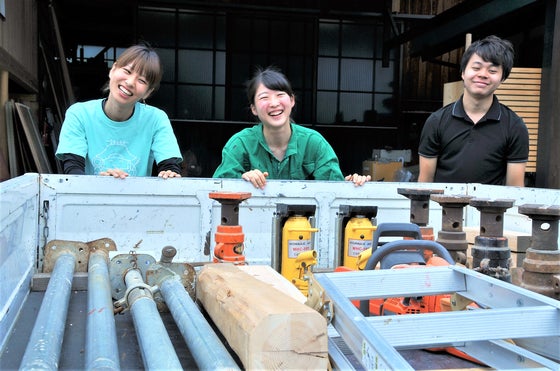 この木を必要な長さに切って梁の下に入れて家を持ち上げます。