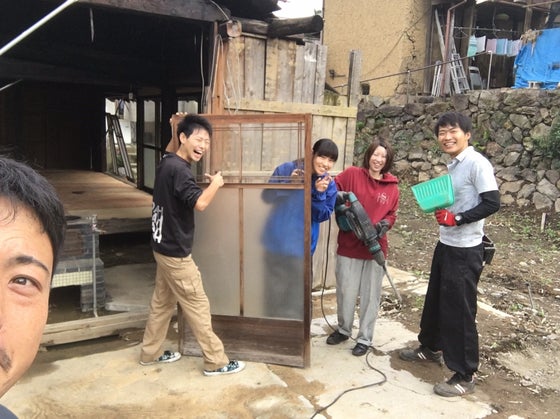 ぼろぼろになっていた壁を取り壊すと中から昔の新聞紙が見つかり、私たちがはしゃいでるうちにあずまさんが窓枠を作ってくださいました。