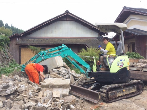 今日の作業は、私たちが乗っているまさにこのコンクリートをはがすこと! ぴよぴよが持っている機械が斫り機(はつりき)またはコンクリートブレーカーなどとよばれるもので、コンクリートを壊すことができます。工事のおっちゃんがガッガッガッ!ってしているイメージがあるようなあの機械です。 そんな力仕事ですが、わらしべの家のメンバーは男の子も女の子もみな順番に交代しながらはつります。また初めてやる作業であればあるほど、ぜひやってみようということでいろんな作業を体験してみます。 ここまではがせました。 青いスプレーで印をつけながら間取りを決めました。みんなお風呂にはこだわりのある様子で、身長181センチのいっちーさんも足が延ばせるようにと間取りを決めました。もちろんそんな大きな湯舟を用意できるのか財布と相談しないといけませんが… 一方、反対側では… ぼろぼろになっていた壁を取り壊すと中から昔の新聞紙が見つかり、私たちがはしゃいでるうちにあずまさんが窓枠を作ってくださいました。 蔵に置いてあった窓がぴったりはまりました! どんどん「家」になっていきますね~