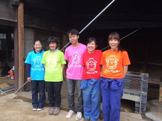 またまた新しいメンバーを迎えての作業日です。わらしべの家のオリジナルTシャツが完成したので、今日から学生チームの作業用Tシャツとしてみんなで着ていきます。 この真ん中のキャラクターはわらしべの家のキャラクターです。里山デザインさんが作ってくださいました。私は個人的に「わらしべちゃん」と呼んでいますが実はまだ名前が決まっていないみたいなので、いい名前が思いついた方はよかったらぜひ右京じかんまで応募してみてください。 床下から柱などが腐朽してしまって、ゆがんでしまっている家を水平に戻すための下準備をしました。「不陸修正(ふりく-しゅうせい)」というそうです。このハイテクな機械からレーザー光線が出てくるので、すべての柱に貼った黄色いマスキングテープの上にそのレーザー光線の位置を記録します。 約30本くらいはあったでしょうか。こんな風に本当にすべての柱に黄色いマスキングテープを貼りました。 棟梁がなにやら計算をしてくださっています。 柱によって梁や桁の下の面から黄色いマスキングテープまでの長さが違いました。今度は黄色いマスキングテープの位置に関係なく、梁や桁の下の面からの長さが同じ位置に青いマスキングテープを貼りました。これもすべての柱に貼りますが、3人での共同作業で効率よく進めてくれました。 黄色いマスキングテープと青いマスキングテープが2枚ずつ貼られた柱たちです。この青いマスキングテープから黄色いマスキングテープまでの長さが、家を持ち上げないといけない長さということになります。1本の基準にした柱以外のすべての柱を持ち上げないといけないのでとても大変な作業になりそうです。 今までの解体作業で散らかっていたがれきや細かな木切れを片づけたり、少し地味な作業も多くはなってしまいました。 途中、急な雨にもあいましたが… みんなで楽しくコミュニケーションをとりながら元気に作業できてよかったです。 差し入れにアイスクリームをいただきました。 いつもありがとうございます