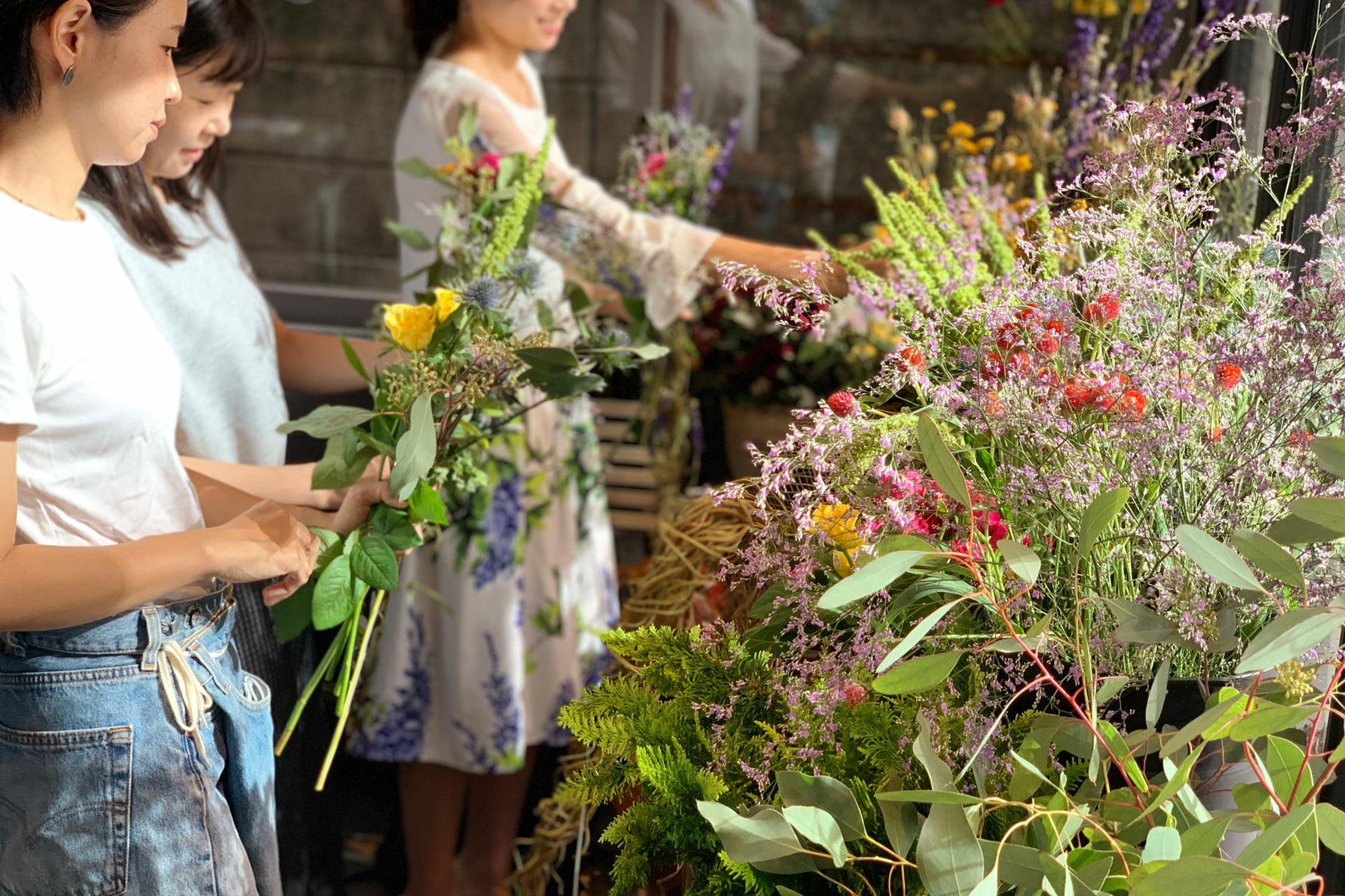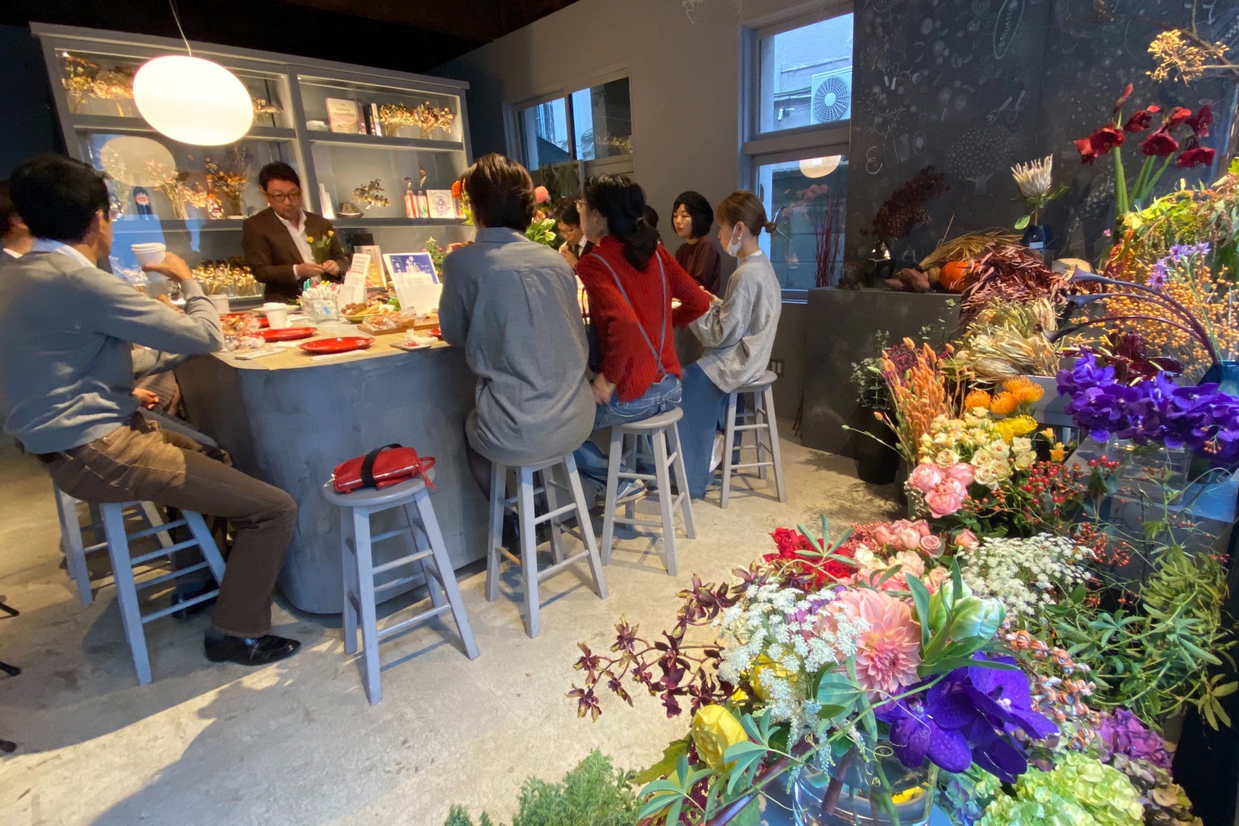 たとえばお食事やお酒を楽しみながら花に触れる「花会(はなかい)」や、1本100円(通常の約半値以下)でチャンスフラワーを限定販売している「hana to me (花摘み)」、子どもたちへの無料のアレンジメントレッスンなど、多くの人が気軽に花に触れられるひとときを創っています。