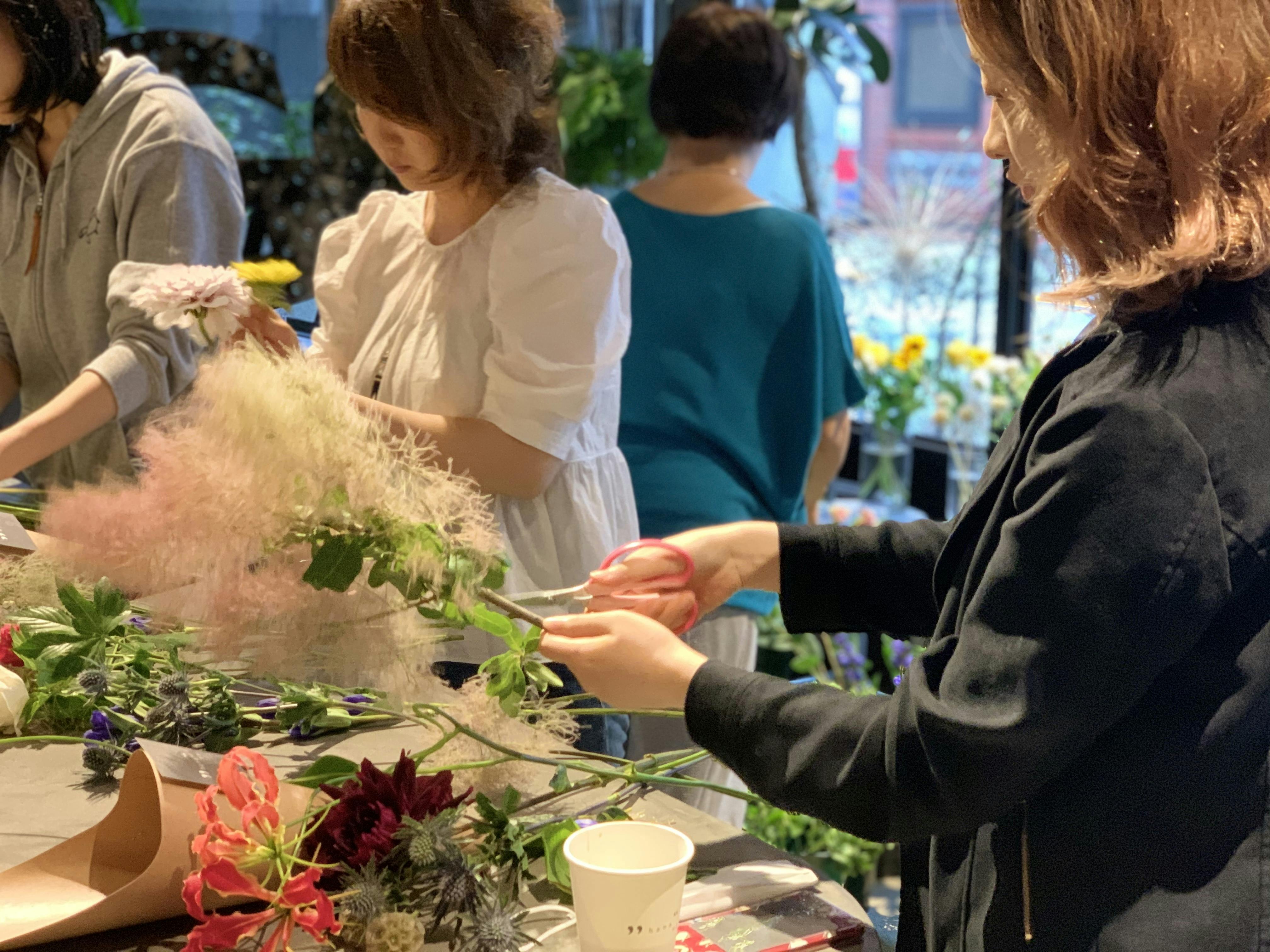 お花に触れたことがない方はお食事とご一緒にお気軽に、そしてお花が好きな方は花材を自由にお好きなだけ選べる特別な体験を。