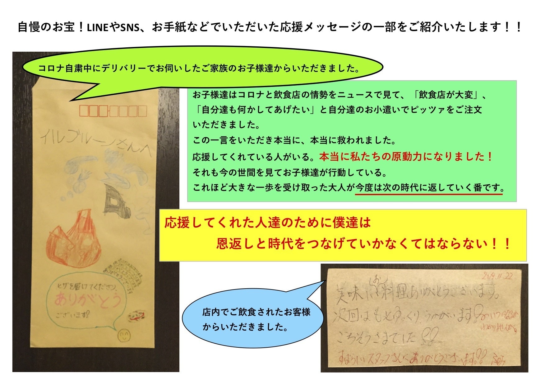 当店がお返しできるものは割引と料理を食べて笑顔になってもらうことだけですが、