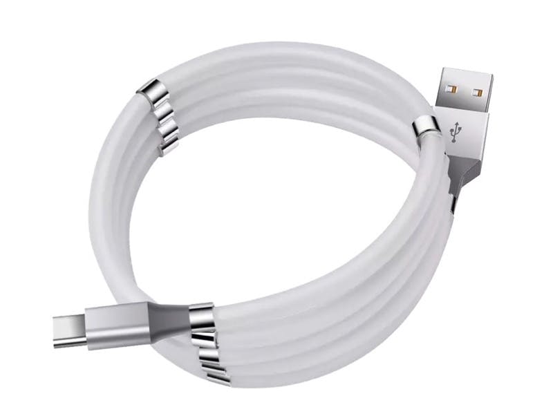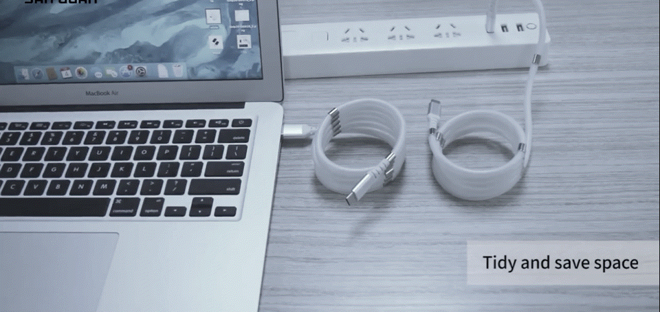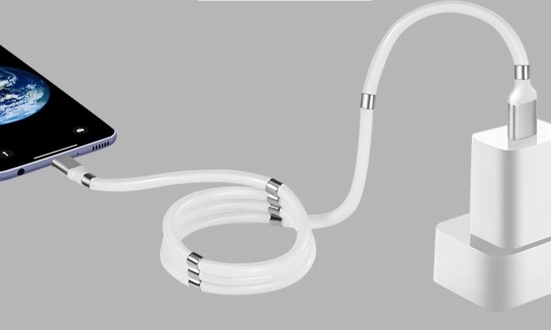 また、このケーブルの随所に取り付けてある磁石の働きで、コードをカチッと音をたてて簡単に巻き取ることができ、常にコンパクトな形をキープすることができます。