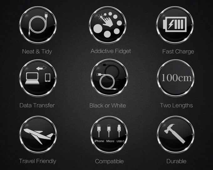 急速充電、データ転送に対応しており、また、ケーブルは耐久性ある保護用シリコンで覆われており高級感あります。