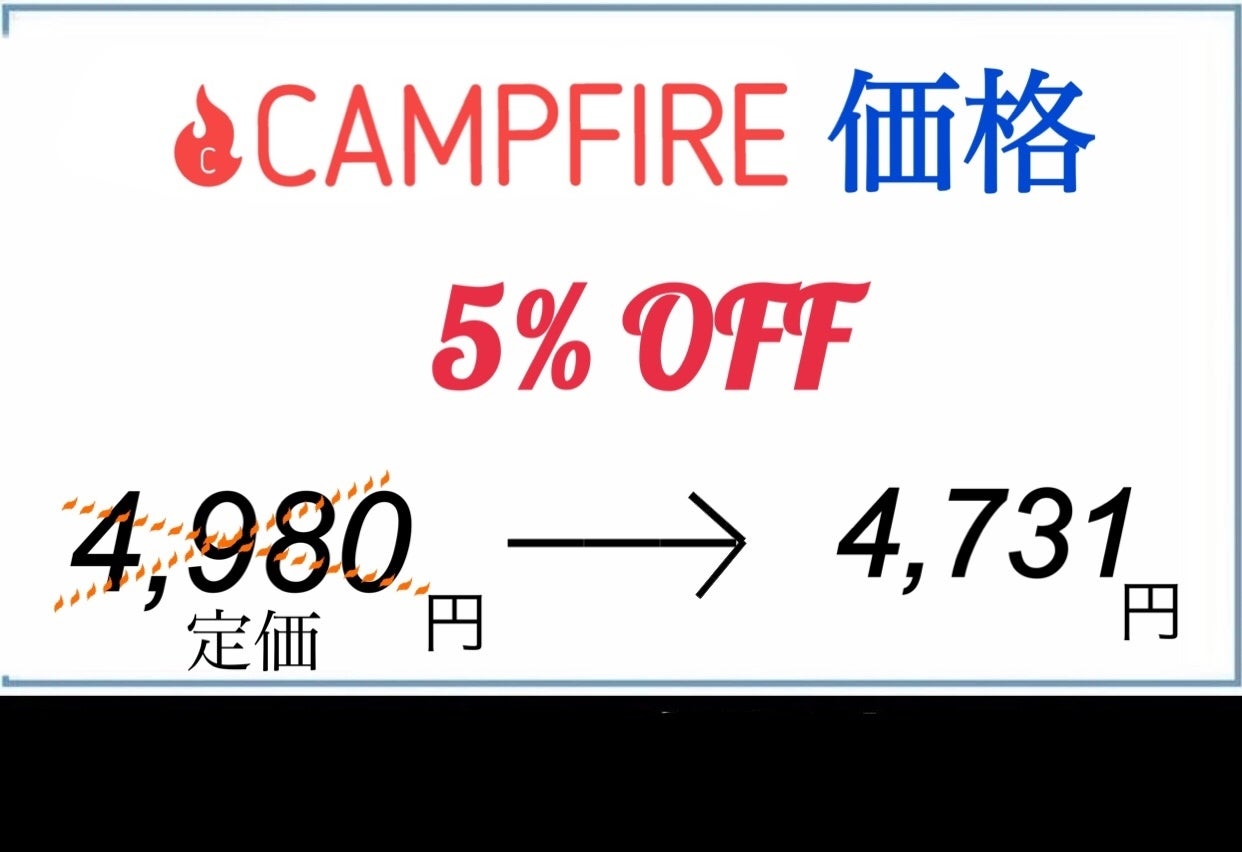※ 支援希望価格とは別にcampfire(machi-ya)のシステム利用料として1支援毎に200円(税別)が支援者様の負担となります。尚、このシステム利用料はcampfireが受け取るもので、当社が受領するものではございません。