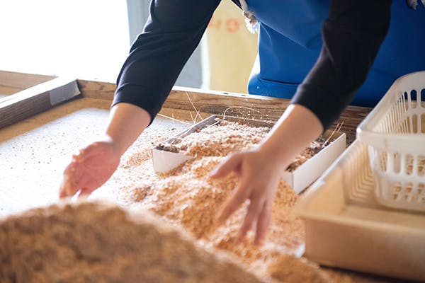 出荷時は一匹一匹を手作業で選別を行い、安心安全はもちろんの事、自信を持って活きの良い最高の車海老を梱包します。車海老はおがくずに入った状態で室温10~15℃であれば数日間生きることができます。