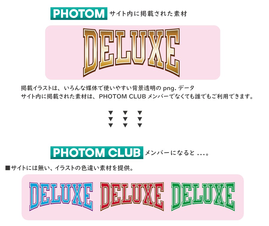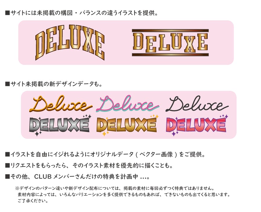 例えば先日「DELUXEなロゴデザイン」という素材をPHOTOM内にアップしました。これがCLUBメンバーになるとーー 。