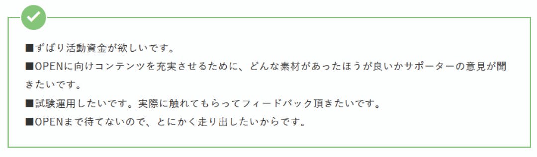 今回のプロジェクトは、サービス開発に向けてのサポーター募集です。