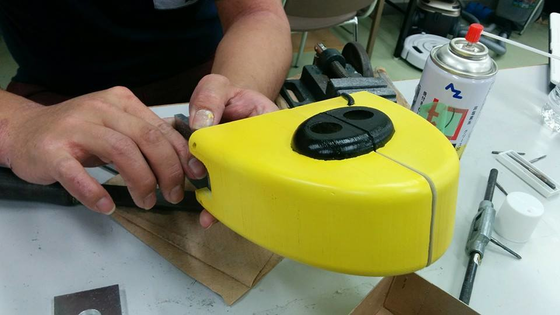 間に合わなければこれをできるだけきれいに加工してくれるそうで、とりあえず部品が入るようにヤスリかけ中の清広お兄ちゃん。