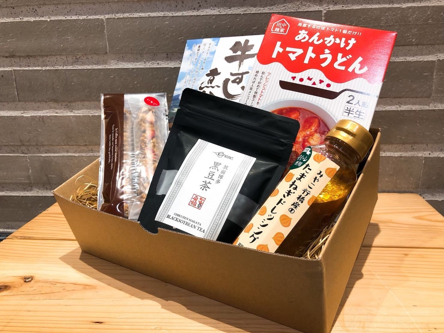 「DOCOREふくおか商工会ショップ」(博多駅前マルイ2階)の特産品セットです。