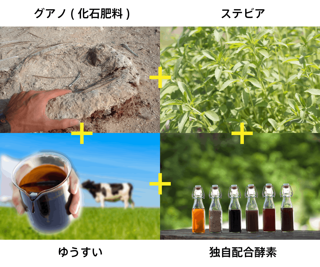 土地の肥沃化させる北海道の石山から採掘される「グアノ」と呼ばれる鳥の死骸などを化石や、サンゴ・貝の化石という空や海からの恩恵、