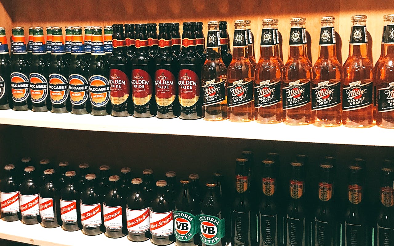世界16カ国のビールに加えて、海外で飲まれている珍しい現地のリキュールやウイスキー、ラム、ジンなど幅広く取り揃えています。ソフトドリンクもコーラやオレンジジュースの他に、マウンテンデューやルートビアなど海外を感じることのできるものも扱っています。