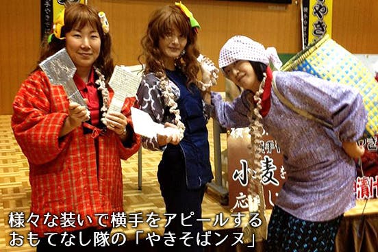 「横手やきそばって知ってる?」をきっかけに、秋田県横手市のいいところを楽しくPRしています。PR担当は、主に横手やきそばサンライ'Sおもてなし隊の「やきそばンヌ」。既に10名ほどのメンバーがいます。