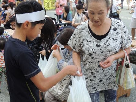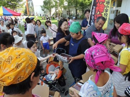 その後、東北復興支援の募金をお願いしながら、自分たちが作ったキャベツと福神漬けを子ども達自らプレゼントして回りました。
