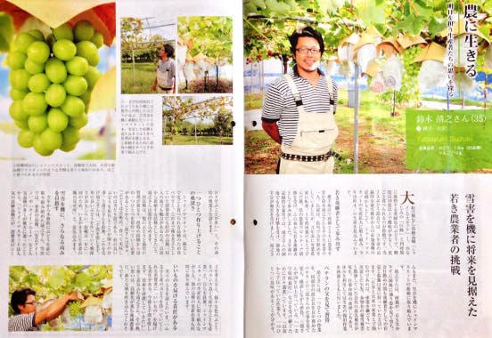 横手市大沢地区でブドウ栽培をしている鈴木靖之と申します。代々続く果樹農家の長男として生まれ、小さなころから畑=遊び場という環境で育ちました。やがて中学、高校と多感な時期を迎えると、農業に対するネガティブなイメージばかりが先行し長男だから継がなければいけないという雰囲気に反発し仙台へ進学し逃げ出したこともありました。