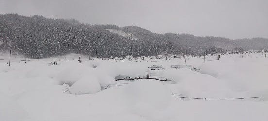 ここ、横手市大沢地区はブドウの産地として知られています・・・・県内では。一歩県外へ出ると「秋田でもブドウを作ってるの?」とよく言われ、全国的には無名に近い産地である事も事実です。横手市は全国有数の豪雪地帯でもあります。年間積雪量は2メートルを超し、ブドウ棚の上にも1メートルほど積もる事もあります。そのすべてを除雪しなければブドウ棚・樹はその重みで倒壊してしまします。除雪作業は機械を持ち込むことが出来ず、すべてを手作業で行わなくてはなりません。人と雪との体力勝負になります。