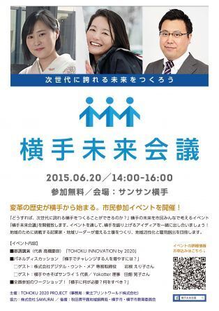 6月20日(土)14時から、横手市のサンサン横手で「横手未来会議」(後援:秋田県平鹿地域振興局・横手市・横手市教育委員会)を開催!参加無料です。是非、ご参加ください。