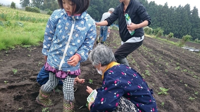2017/06/27 14:062017年6月25日第3回子どもファームを無事に終了しました! 朝9時より十和田市内の無農薬農家さん「苫米地さん」の畑に集合。この日は子どもたちが「キャベツ」と「ブロッコリー」の種を植えました。農家さんが目印となる穴を開けそこへ子どもたちが5粒ずつ種をまいて行き土をかぶせて「大きくなーれ」と声をかけます。女の子は一生懸命植えていきますが、男の子は途中に現れる虫に夢中になってしまったり(笑)それでもなんとか予定していた数を植えることが出来ました。 種を植えたら今度は育った野菜を収穫!この日はキャベツと大根を収穫しました。キャベツは一人では採ることは出来ないのでみんなで力を合わせ収穫しました。 種まき、収穫を終えたら、地域のお年寄りとの交流の時間「おばあちゃんの料理教室」です!この日の料理は味噌団子。団子は、十和田では「じゅねもち」や「そばもち」と言ってお祭りや道の駅などで売られていて古くから親しまれているもの。子どもの頃はおやつなどで良く食べられています。 ここからがおばあちゃんの知恵!家庭で作る場合余ったご飯を利用してこの団子を作ります。ご飯を軽くお湯でといて小麦粉にまぶして茹でます。(この日は苫米地さんの無農薬の小麦粉を使用)さらにそれをトースターで焼いて最後に甘い味噌だれを塗ったら出来上がり!ポイントは甘味は砂糖は使わず、おばあちゃん自家製の春の野草酵素を使用。体にもやさしいお団子です。おばあちゃんと子どもたちが一緒になってお団子を丸めながらのふれあいの時間を過ごしました。昔から伝えられる地元のおやつを、子どもたちも美味しそうに食べていました。 子どもたちの経験、お年寄りたちの笑顔、お母さんたちの学びのあるイベントとなりました。この「子どもファーム」を行事として取り入れたいと言って頂いている園もあり、次回の予定は農家さんを含め打ち合わせのあとお知らせいたします。 このプロジェクトへご賛同頂けましたら是非ご支援をお願い申し上げます。 もっと見る