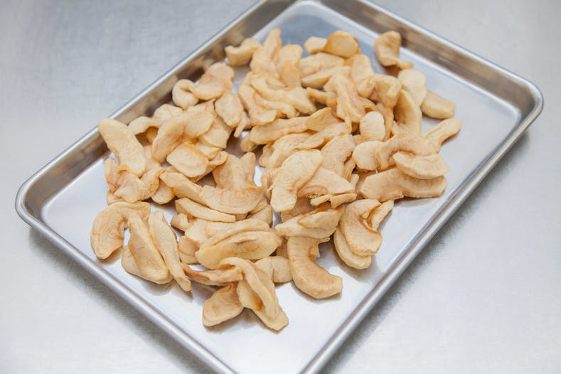 コラボしている農業生産法人アネッコから、生りんごを仕入れ、通常パンを焼いているオーブンで「自家製ドライりんご」を作ります。この「自家製ドライりんご」には、加糖していませんので、りんご本来のナチュラルな果糖が楽しめます。