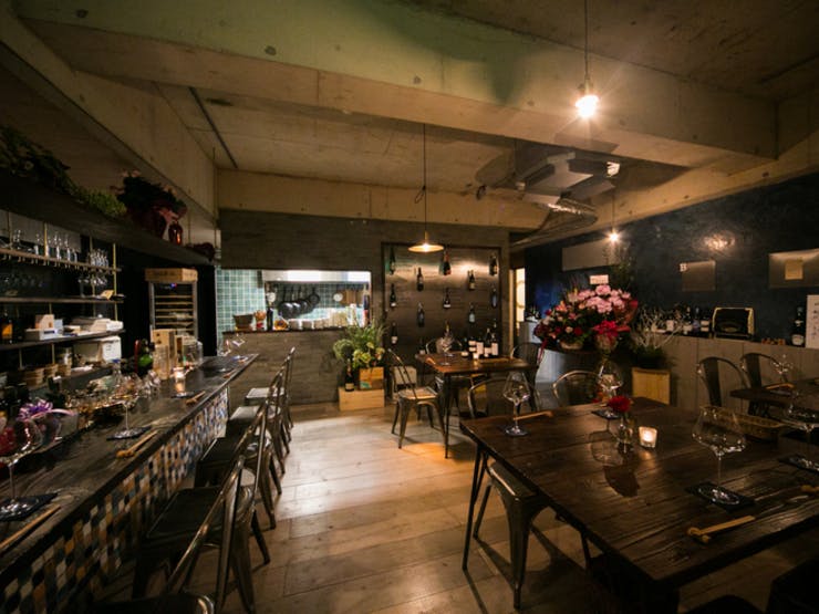 落ち着いた空間でゆっくりとワインと食事を楽しめます。