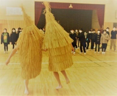 平成31年1月22日(火)午後、加勢鳥保存会で地元の小学校を訪問し、上山藩の城下で江戸時代から受け継がれてきた民俗行事「加勢鳥」の歴史を紹介し、6年生が篠笛と和太鼓のお囃子にあわせて加勢鳥演舞を全力で体感しました。