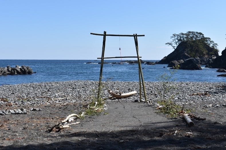 ・恋祝浜神社:1日限りで小祝浜に竹で鳥居をつくる、町の方が伝えたい人への愛を大学生が代弁して海に向かって叫ぶ