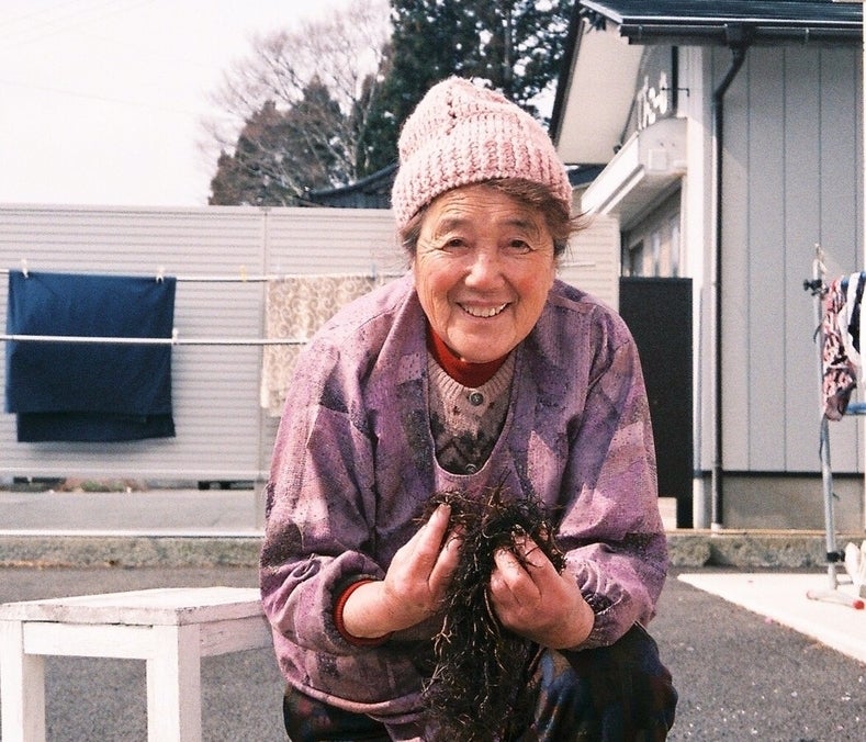 ▲ふのりを干すばあちゃん/撮影:フォトグラファーさみちゃん(浜音メンバー)