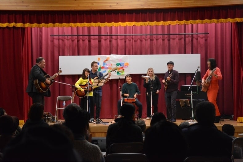 ▲「小さな世界」をコラボして演奏している様子