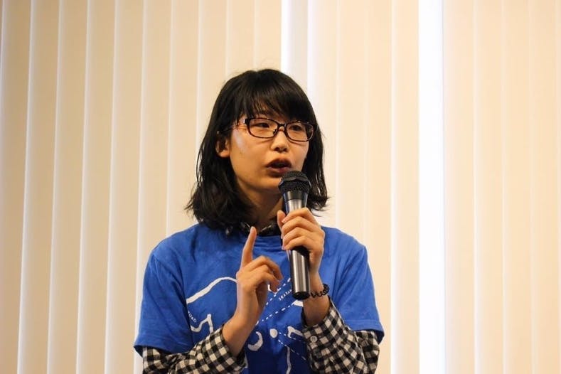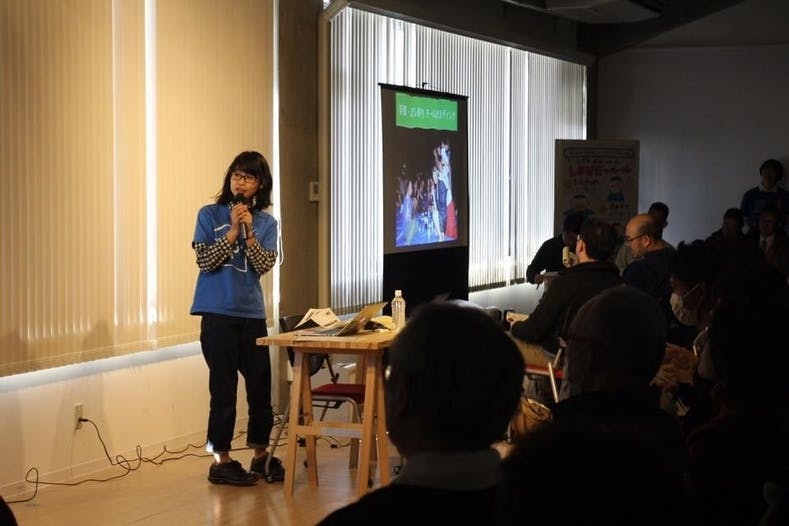 ↓第3回SCHシンポジウムで SUMMER IDEA CAMP について コミュニティデザイン学科2期生 が講演している様子