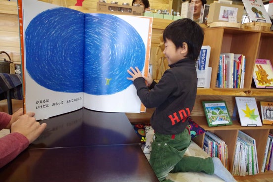 ▲おやこカフェで絵本を楽しむ子供