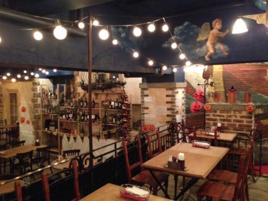 屋根裏を模したイタリアンレストラン「カフェラ・ボエム表参道」にて