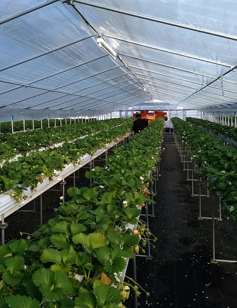今日はイチゴ栽培歴1年目の黒石と栽培歴5年目狩野の若手2人での作業です。