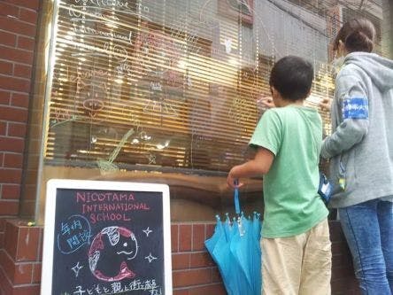 商店街のウィンドウにお絵描きをさせて頂きました!