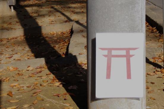 ▲こちらはよくあるゴミが捨てられるところに置く鳥居のマーク。